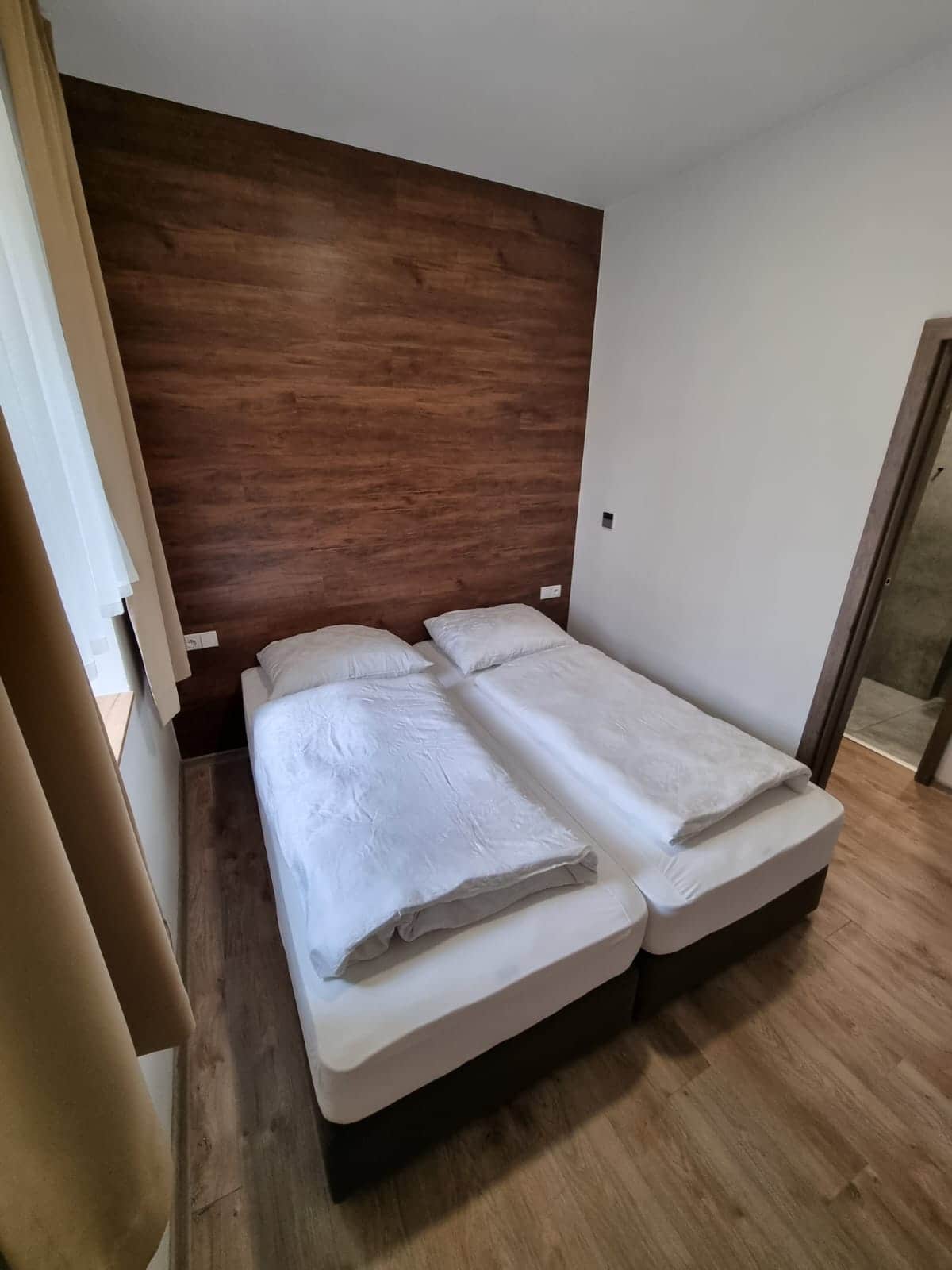 Ložnice apartmánu je jako samostatná uzavíratelná místnost s dvojlůžkem.